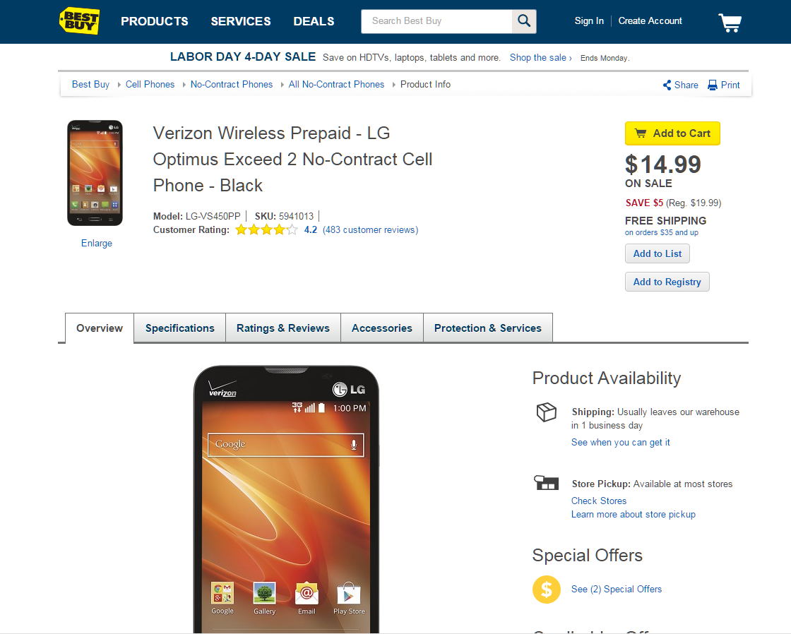 For those in the US, this has got to be the deal of the year. Best Buy is offering a closeout price on the Verizon variant LG Optimus Exceed 2 phone for $14.99! It's not the world's best phone, but it does have a 5mp camera. Team it up with the free Alfred app and the phone or tablet you already have, and viola... you have an HD security camera with live and recorded video, still frame capability, motion detection, push notifications and day/night mode. To get those features at HD resolution would normally be in the $200 per camera range (Dropcam HD or Nest Cam). You can add as many cameras as you want (including repurposed old phones or tablets you may have lying around), and there's even a Web app (only works with the latest Firefox) that allows tilt/pan/zoom that's not available in the mobile app. The mobile app will use the settings you make in the Web app though... which is a good thing, because the Web app is otherwise pretty poor.