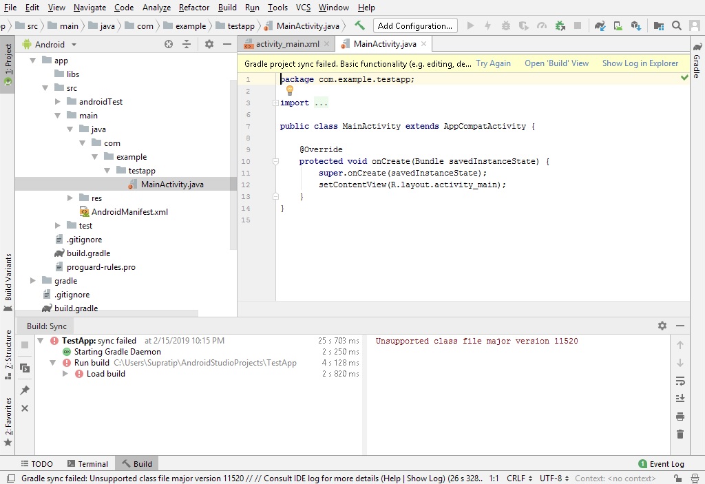 I've done that and everything related to gradle syncing but nothing's working now. A few days ago everything worked perfectly and then I updated the software. When I started it showed no error(gradle sync successful) and it showed an update available for gradle. When I updated it the error starts.