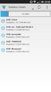 This application measures the WiFi electromagnetic radiation in approximation, and given the selected limits, it informs you if your environment could be considered harmful or not.