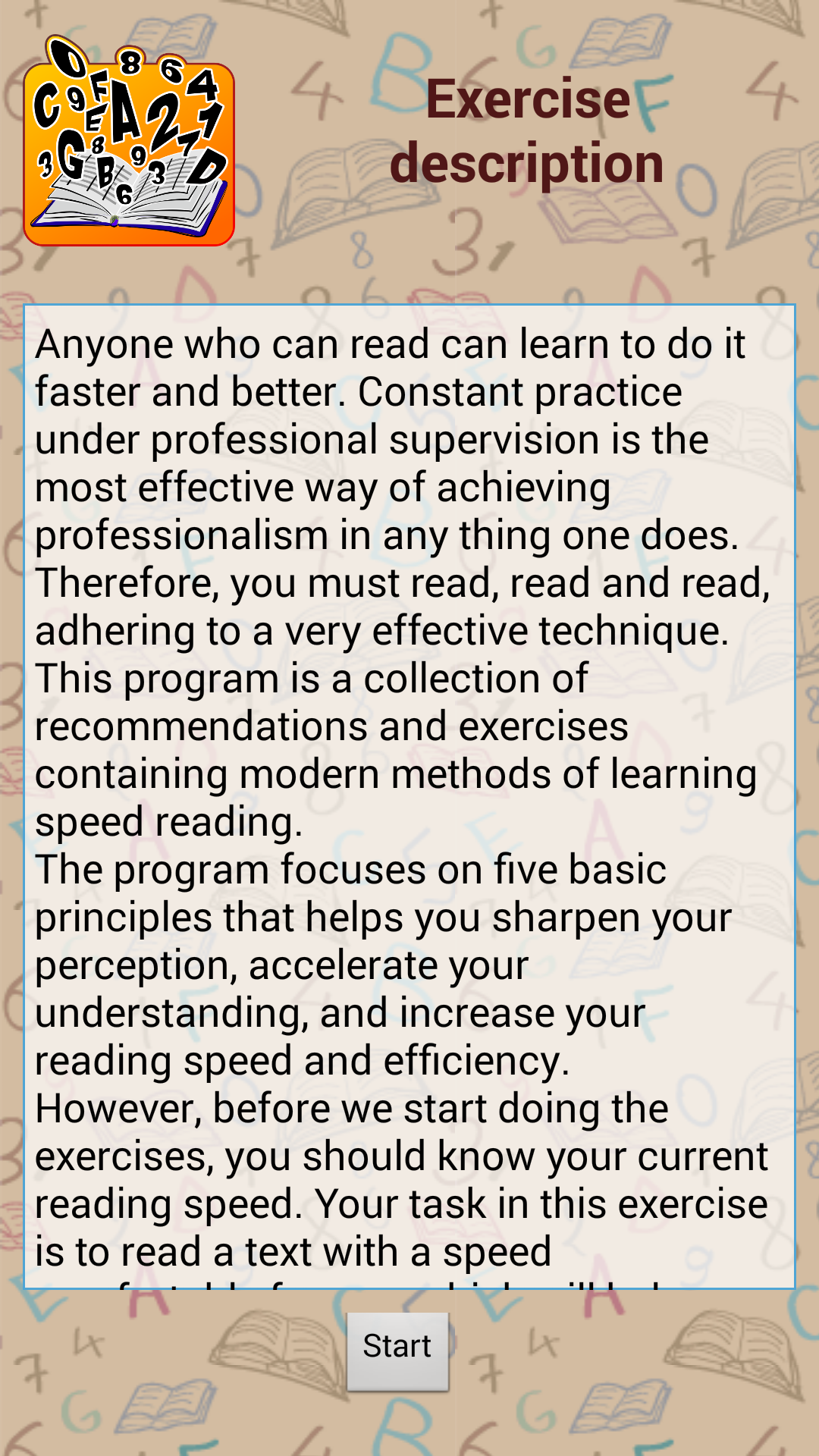 - Advances Couse: a set of exercise designed to continue improvement of reading speed.