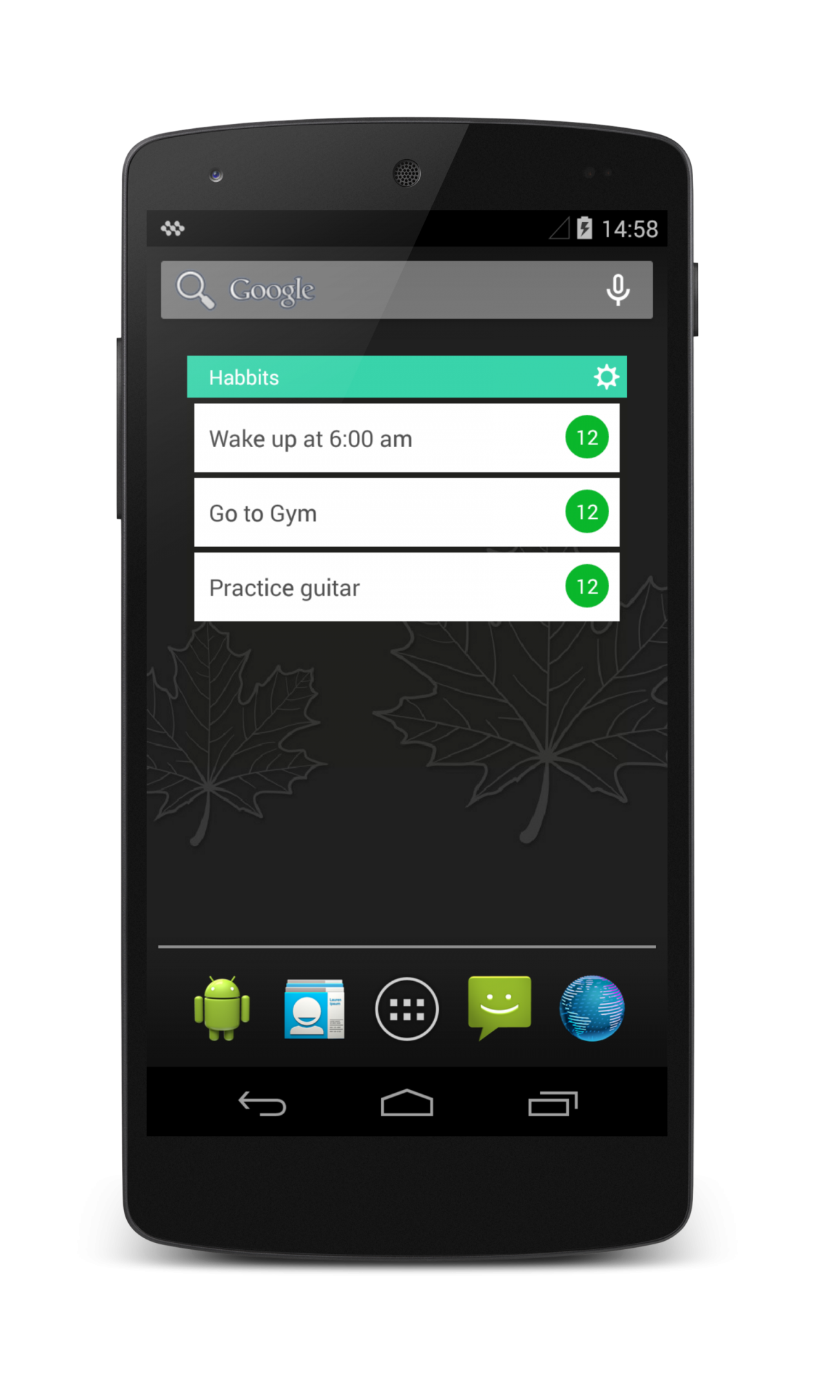 Track your habits and goals right from the homescreen with beautiful widgets.