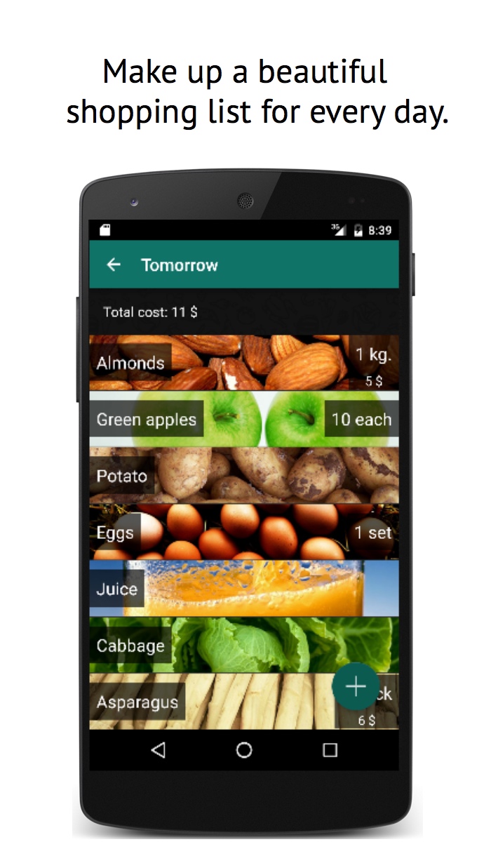 This application is specifically designed for easy hike to the store keeps track of prices, dimensions, categories, purchase items, but the distinction from other similar application - the names of the purchases are accompanied by not a boring text, all purchases have memorable bright picture that very quickly helps to remember that you need to buy. You need only glance at the list and immediately remembered all what need to buy. Because we all know that the images convey information much faster than only text.