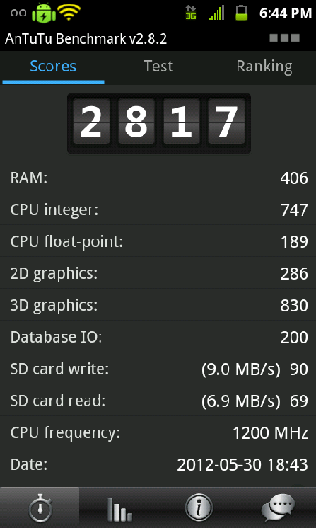 I wonder what's causing the write speeds to be so high? The highest scores AnTuTu will give is a 150 looks like. I also notice that after I loaded some more stuff on my sd card and loaded my phone down with apps that the write speed dropped. Still high but not near as high as it was. Either way I'm happier than a pig in mud!![]()