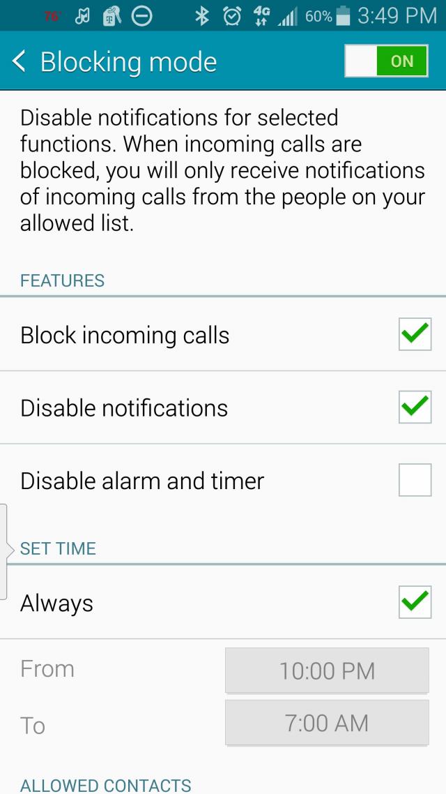 Anyone notice that Blocking Mode doesn't not work on Note 4 T-Mobile. I've selected and chosen times and put all times and notifications, etc still come through.