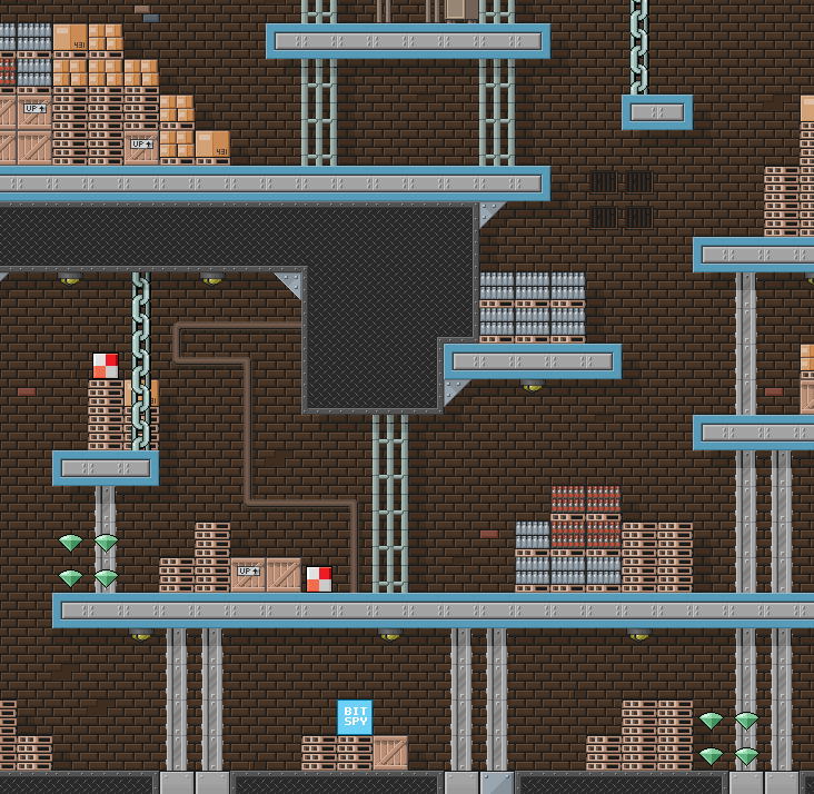 Building levels, coding the final pieces and photoshop:ing new tiles for my upcoming game. With the current development speed, hope to get it out before autumn. This is "The warehouse" level..