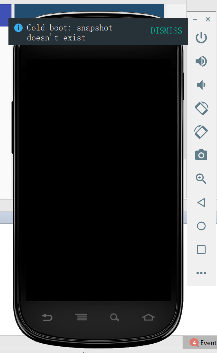 when I was using AndroidStudion to develop an app, every time when I open the emulator, it shows the error message on the top of the emulator: Cold boot: snap shot doesn't exist DISMISS(shown in the picture).