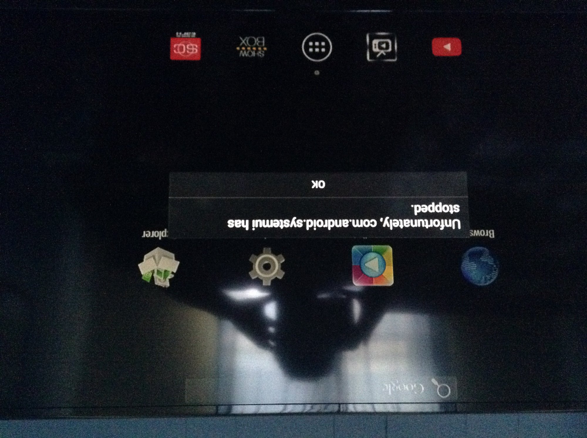 "unfortunately, com.android.systemui has stopped" I receive this error when I power on my box. It is running on all original firmware. I believe Rocketchip. I can't get passed this screen when I hit ok it just pops back up. my of won't detect the box either. Please assist.