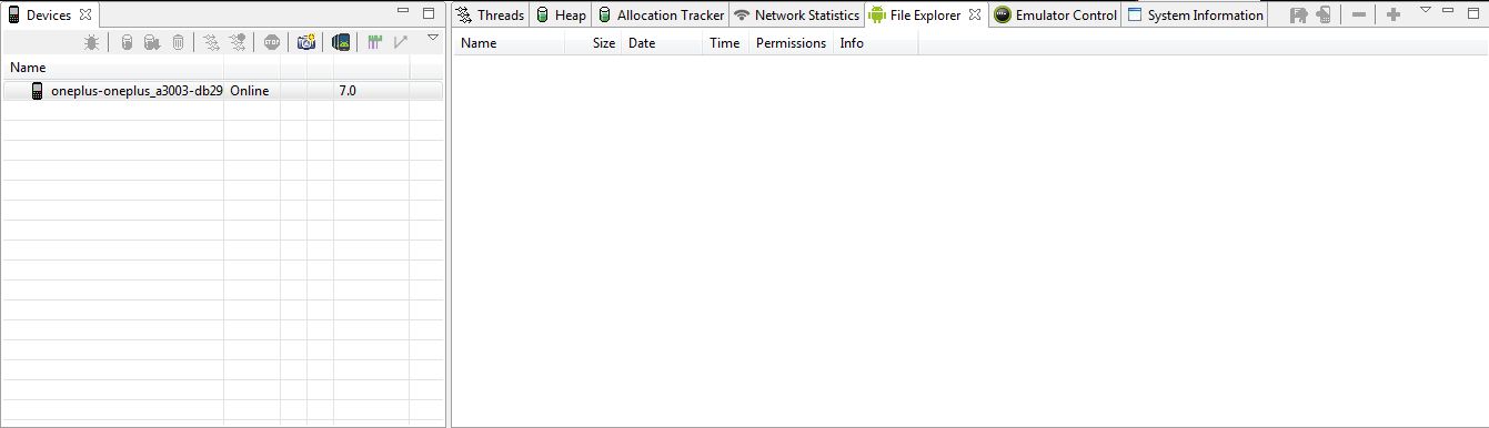 Me and a friend are doing our end of year project. We have ran into an issue where when using DDMS software it doesn't show anything in the file explorer so we cant see if there is anything in the data/data folder. My main question/plee for help is why don't I see anything in the file explorer and how can i fix it?!