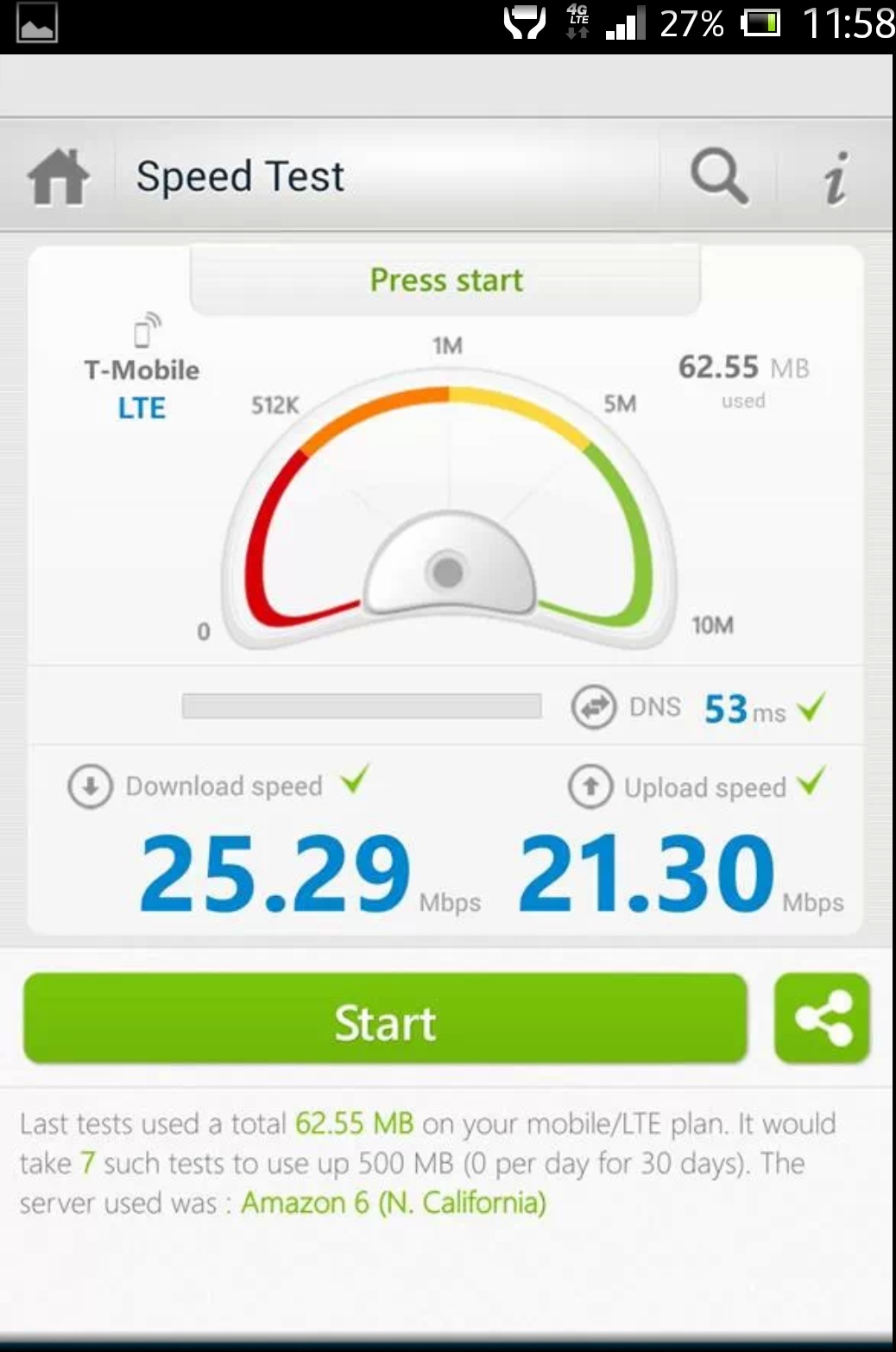 Honestly, unless your downloading a ROM or something on the go, the actual difference between 5mb down and 10 isn't going to be noticeable.