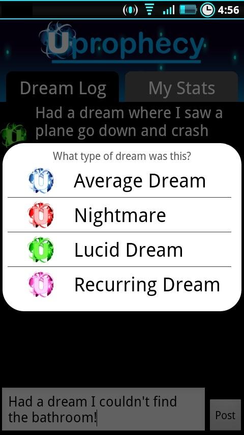 Dream Log by Uprophecy is the best way to keep track of and document your nightly dreams. View your personal dream statistics page to see trends in your nightly dream activities and discover new insights about your dreams. Then share and discuss what you and others from around the world are dreaming about every night on our website www.uprophecy.com