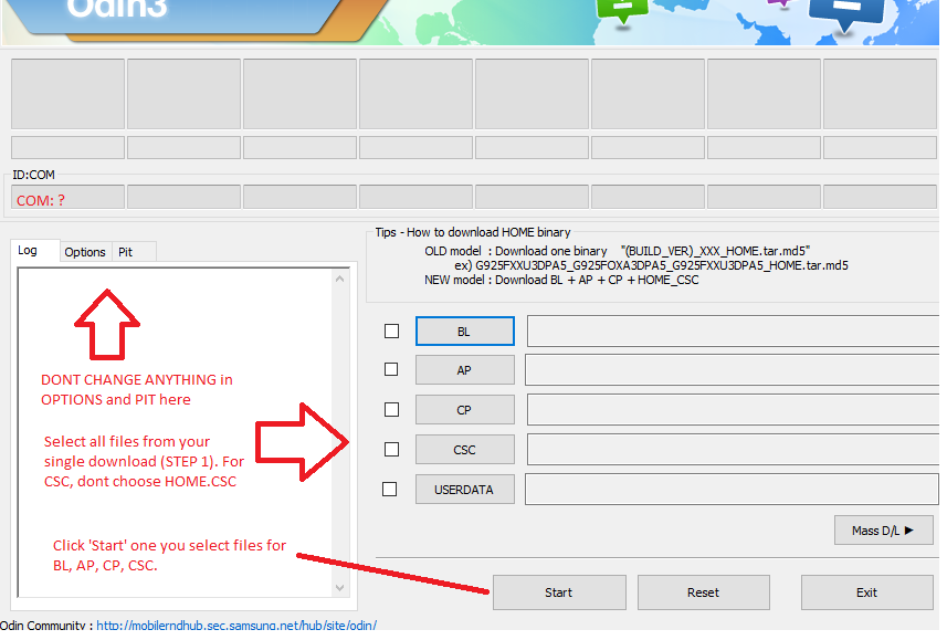 In any case, here is the Odin log: