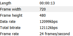 Using the default MPEG4 codec, bit rate increased to 10 Mb/s