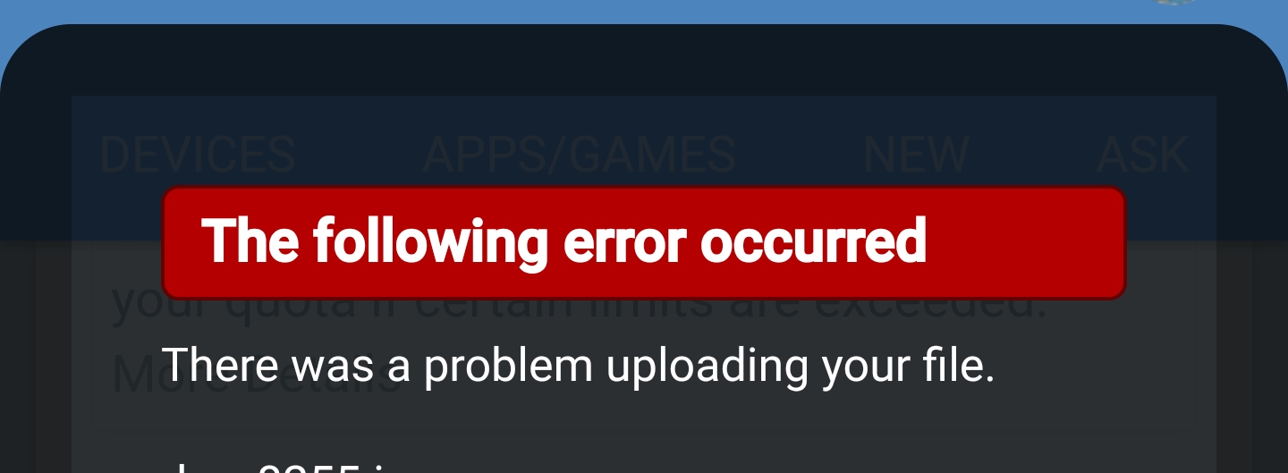 Since its wording is different than when a file is too large, I'm *guessing* it's somehow related to the file being on one of my computers, not on the phone I was using. It's an odd message for a file that's definitely an image! (And a supported type.)
