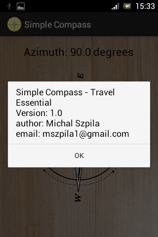 I hope that new update will appear in the next few days.Link to Google Play, here is also more information about application: https://play.google.com/store/apps/details?id=org.eszpila.simplecompass