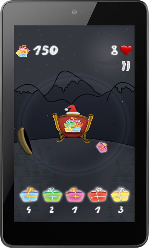 Use your finger, tap or drag a Christmas basket in a circle to collect different colored presents and thus earn points. Beware of brown coal, for its collection you get penalty points.