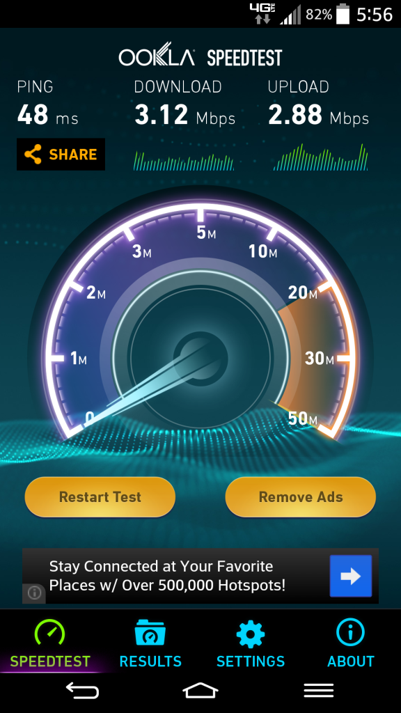 HSPA+ speedtest yields 3.08mbps down, 1.5 up.