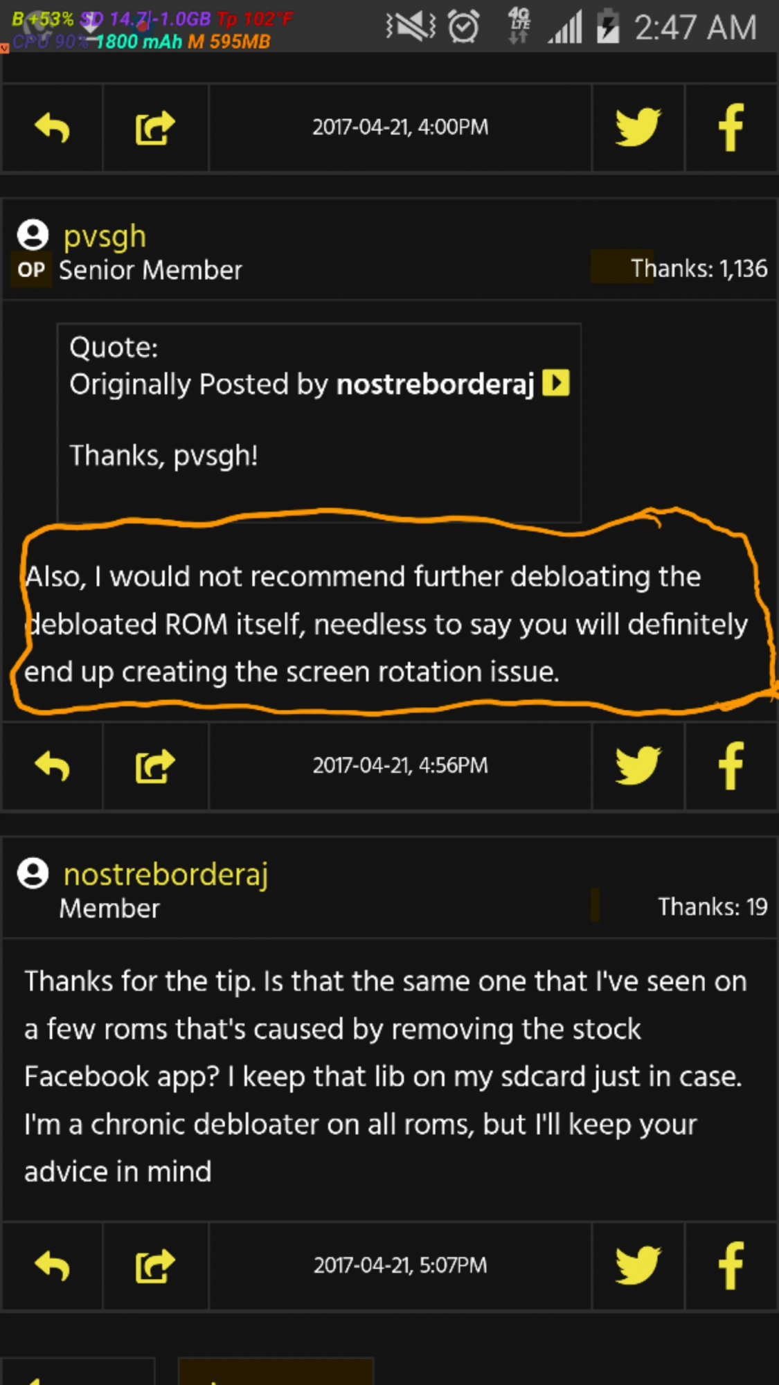 That may be how that rom is or maybe that sinior member dosent know what the freak their taking about . All I know is mines deodextef and debloated and I haven't got any rotational issies at all. In all my 7 years modifying I have never ever, ever, ever, ever, had rotational issues whatsoever. LOL :)