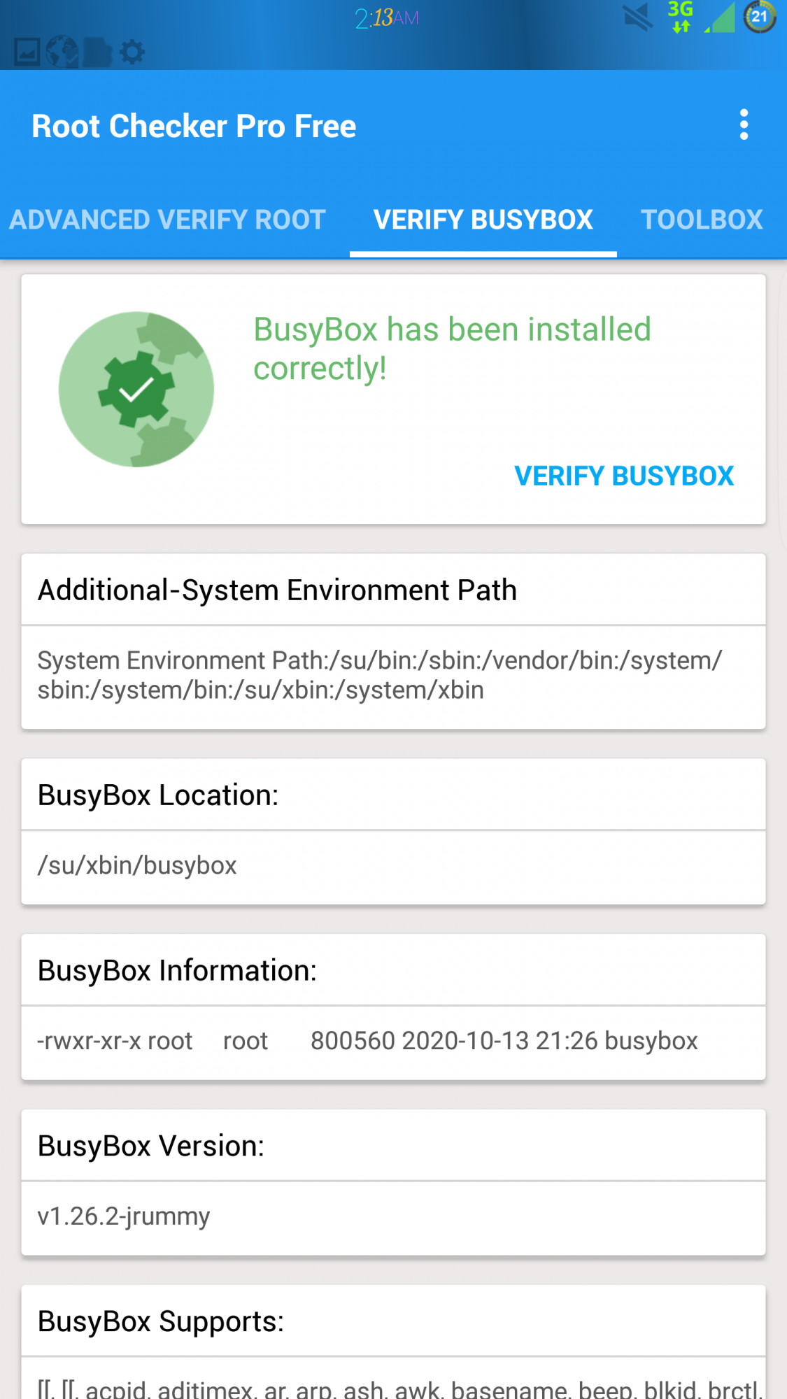 Download the app above, Its the only one I know that shows the path and status. If it looks like mine its good. If it shower Multiple busy boxes installed correctly let me know.
