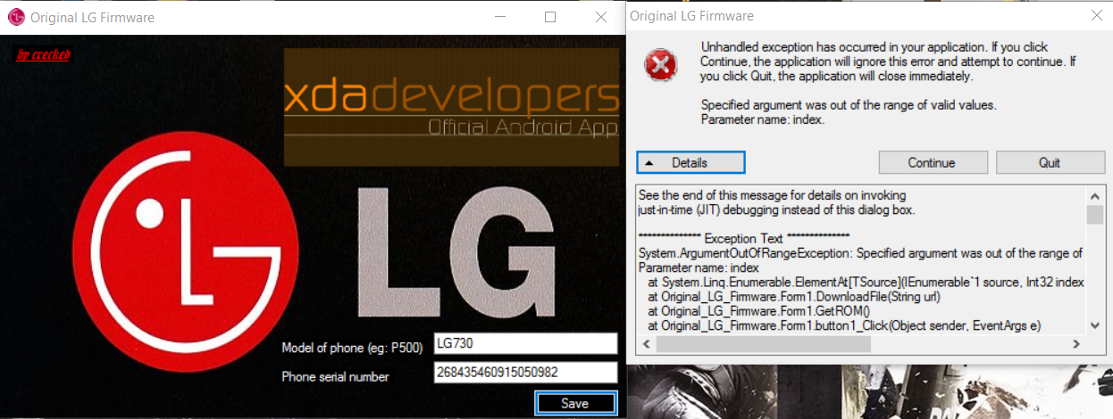 3. Open "Orignal LG Firmware" Enter "LG730" in "Model of phone" and your IMEI/MEID in the "Phone serial number" field.