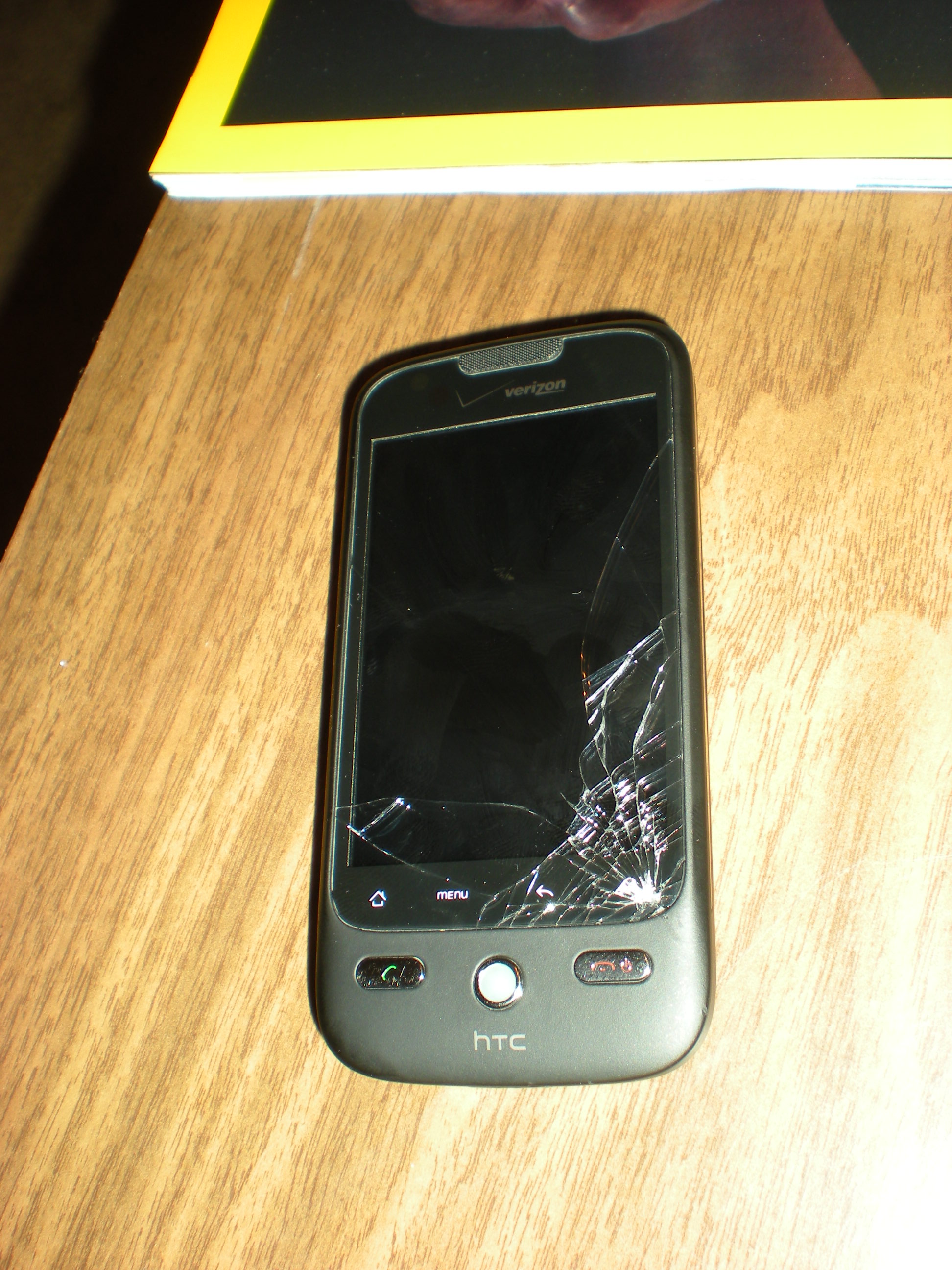 The Eris' screen is not, however, resistant to dropping it on a small cobble path. (See picture) Amazingly the screen and all of the function buttons (even the search) still work. Taking it in today to get it replaced though.