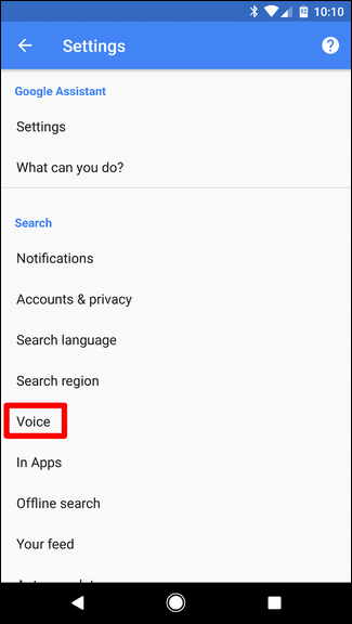 If your device has Google Assistant, you can access those settings from here if you’d like, but we’re looking for more general option: Voice.
