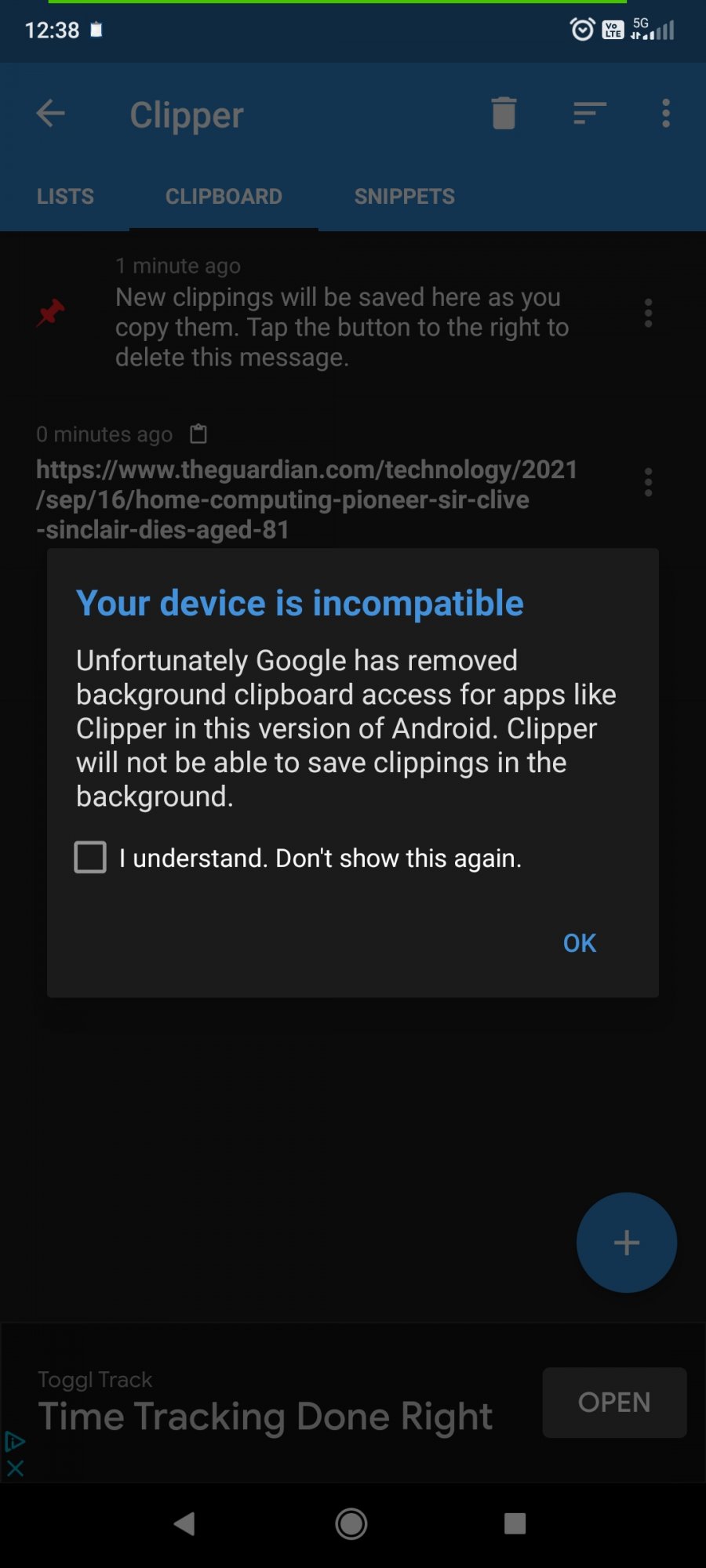 I'm having a terrible time finding a clipboard app. The clipboard that was provided with my Android is horrible. If I don't email links, text, etc to myself constantly throughout the day they're obliterated when the clipboard fills up with text and links plus screenshots that are in my gallery - those screenshots being in the clipboard are completely redundant and unnecessary. They're in my gallery! Why are they tying up clipboard space?