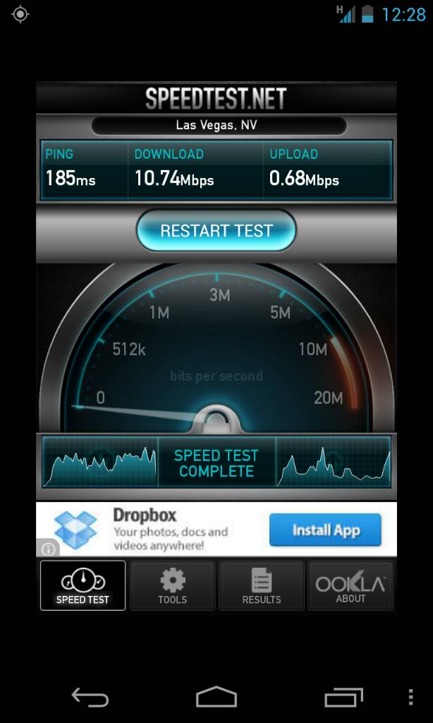 It seemed like, at least in this testing, it is anywhere from 2-5 times faster. What was interesting was even at lower speeds, the dual-carrier seems to make a difference, with him getting almost 5 times the speed during a congested period of the day. Apparently DC-HSPA makes a difference most of the time, not just when you are pushing the upper limits of HSPA+ 21.