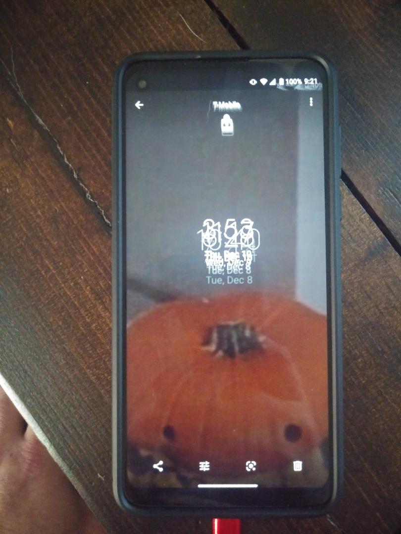 When we first got the phone, the lock screen was normal. Now it has several clocks overlayed.