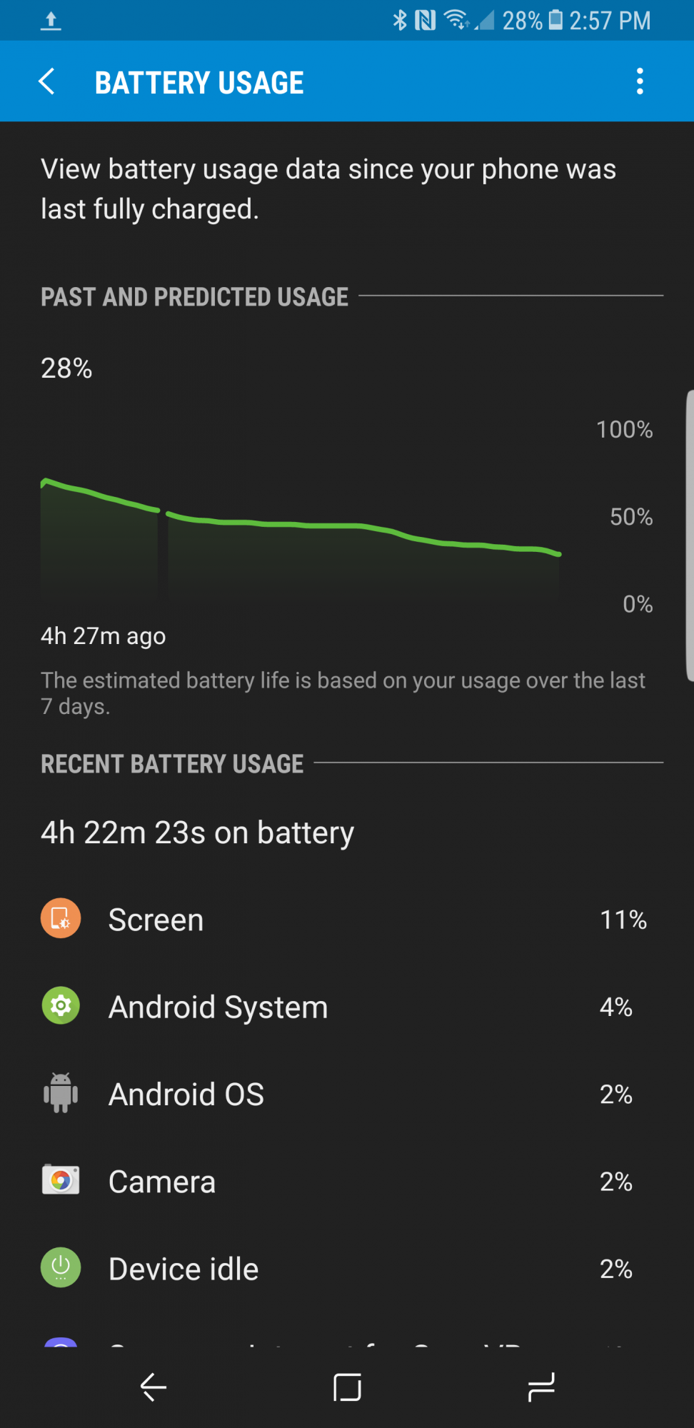 I've had the Galaxy S8+ for a few hours now. The first few hours with a phone aren't a great test for battery life. I've been downloading stuff all day. But, for the sake of sharing, here's how it has held up so far.