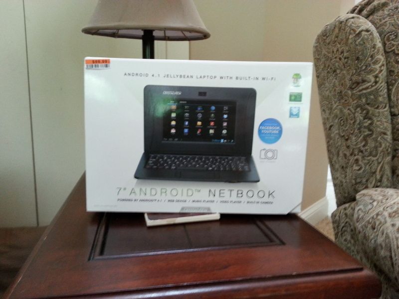 It's literally a tiny netbook running Android 4.1. my latest grab at the Big Lots and one of the next that i'll likely brick. it's got decent hardware, even 1GB of RAM (most come with a paltry 256-512MB that struggles to run ICS), and a 1.2 GHz Dual-Core processor. not sure if it is pre-rooted or not, but if it is, i will see if my Play Store hack works on it, and try my hand at a custom ROM or recovery on a cheap device.