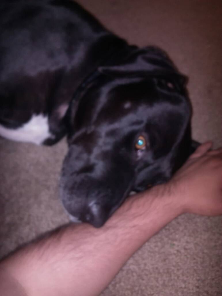 It's not a funny picture, but I took this one of my pittie. She loves me! :p