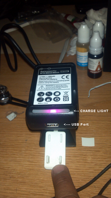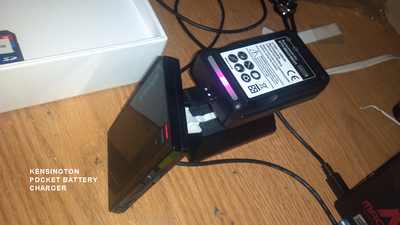 Kensington Pocket Battery for Smartphones device (which I highly recommend by the way) into the usb port of the charger and tada, we have power. It charges the Kensington battery pack. But not the Photon via the usb.