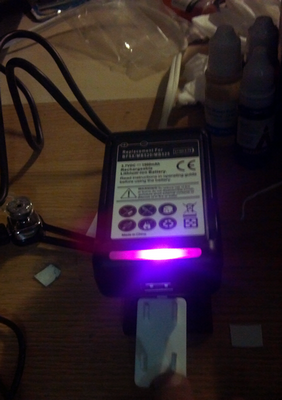 The charger has retractable prongs to connect to the wall and it also has a usb port which I guess is to connect another device to charge from (like the Photon connected via a usb cable.) There is a nicely soft glow light that is colored red (more like magenta) when the battery needs charging and turns a nice color green when the battery is fully charged. Supposedly the charger box indicates that the charging stops once the battery is full to prevent overcharging, but I have no way of knowing that without a battery tester of some sort.