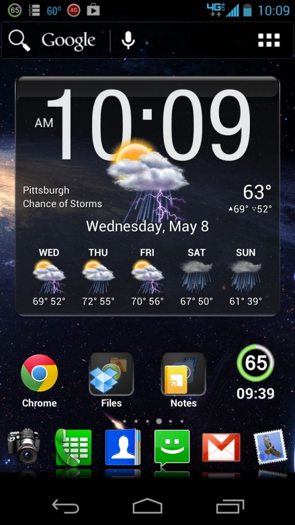 Nothing fancy, just a screenshot of my new stock Droid Razr HD. I've been on Android phones since the HTC G1 and this is the best one I've owned.