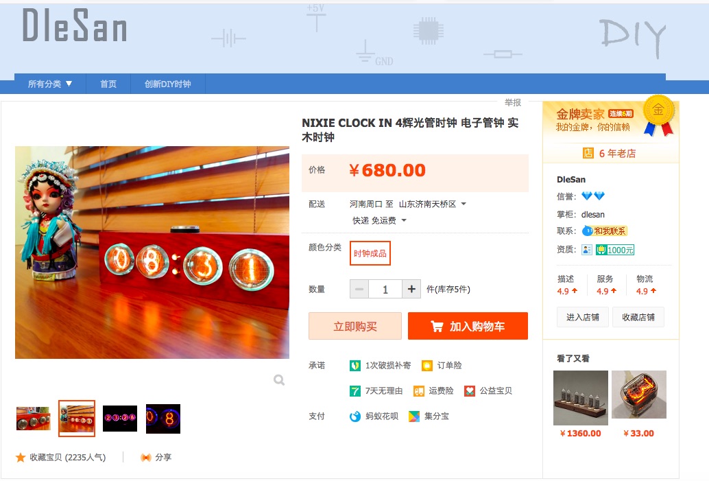 I IM'd the vendor this morning by Wechat, and he's actually building them at home. And the nixie tubes are apparently USSR made ones, new old stock, as I'm pretty sure this type of display is no longer manufactured.