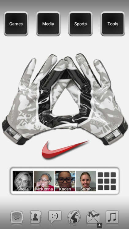 I use Nova Launcher Prime so I have several gestures set up to open frequently useds apps. Clock is built with UCCW, picture calendar is BLIK calendar widget. Animated widgets is used for Games, Media, Sports, Tools. Contacts widget is MeContacts2 which can be found here.