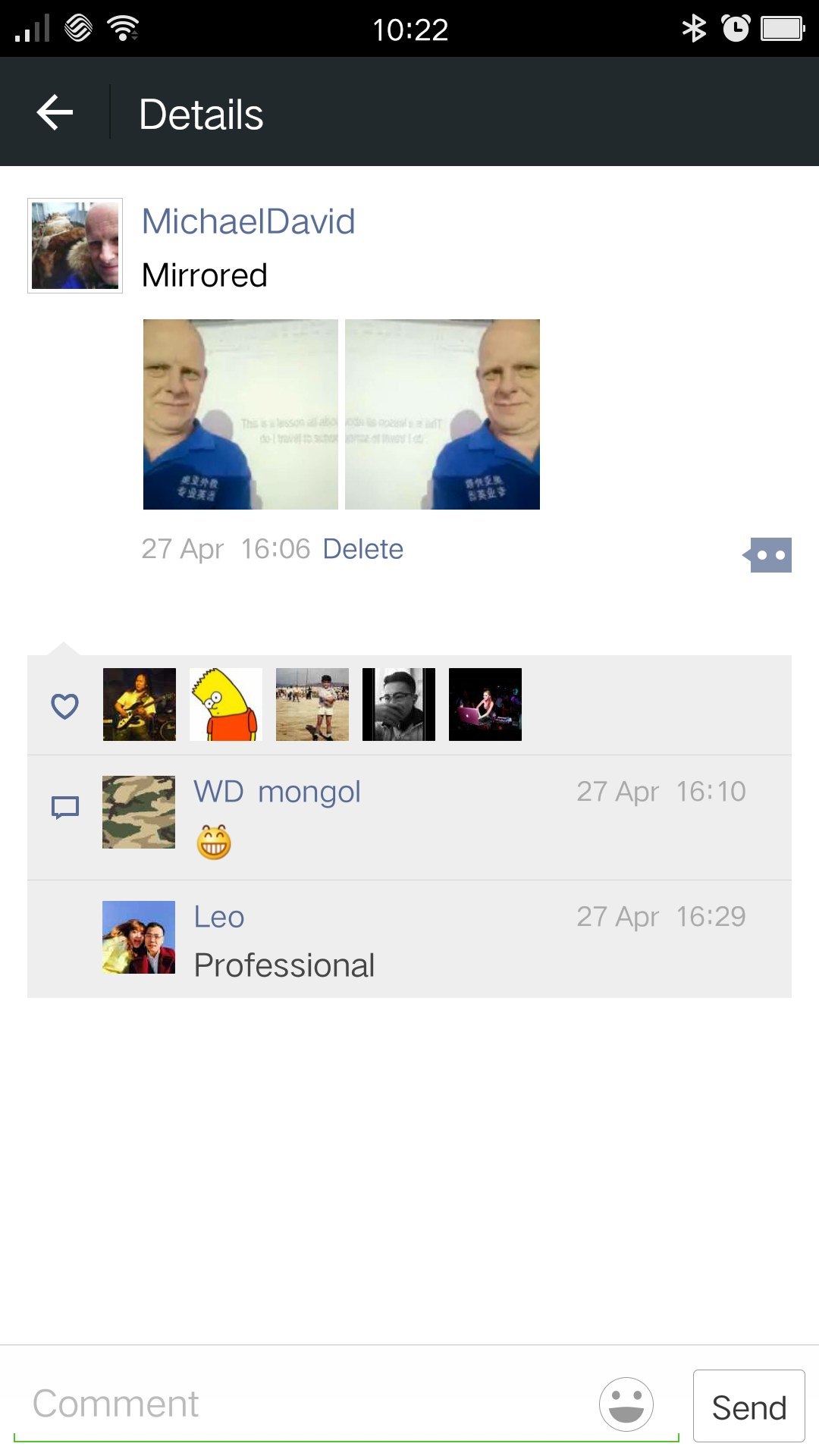 There's a setting when using the selfie camera, mirror or no mirror. Selfies I posted previously weren't mirrored.