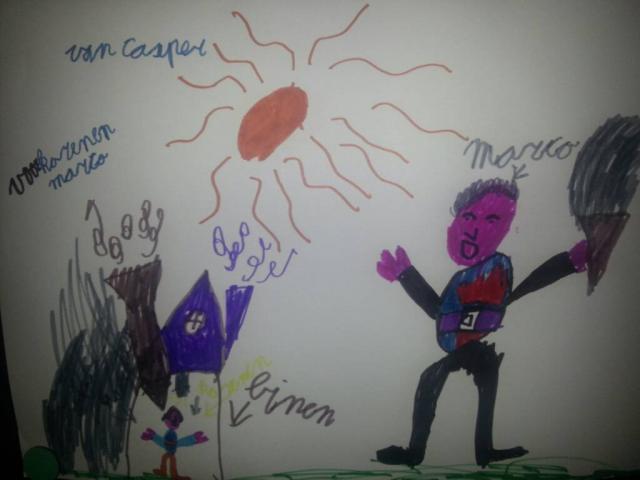 We had a friend and her 8 year old over for dinner. The kid had a great time, really! He left us this drawing on the fridge.