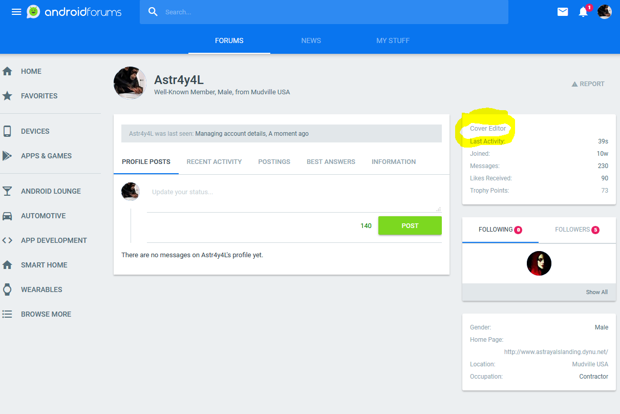 Now everyone here would know by now that I'm sometimes a Button Pusher, so I admit I tried to push the button but to my surprise it seems there's some functionality involved in editing My own profile that I can't access.