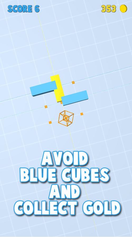 Simple arcade game with neo-futuristic design. Train your reflexes and try to avoid cube bombs, which moves in radom directions. The more you playing, the more bombs will appear and faster. Besides, you can try to collect a gold, which moves in random direction as a bombs and at random moments of time. Personalize your game and open more gamemodes for it, and to pickup a sandwatch, which slows time speed.