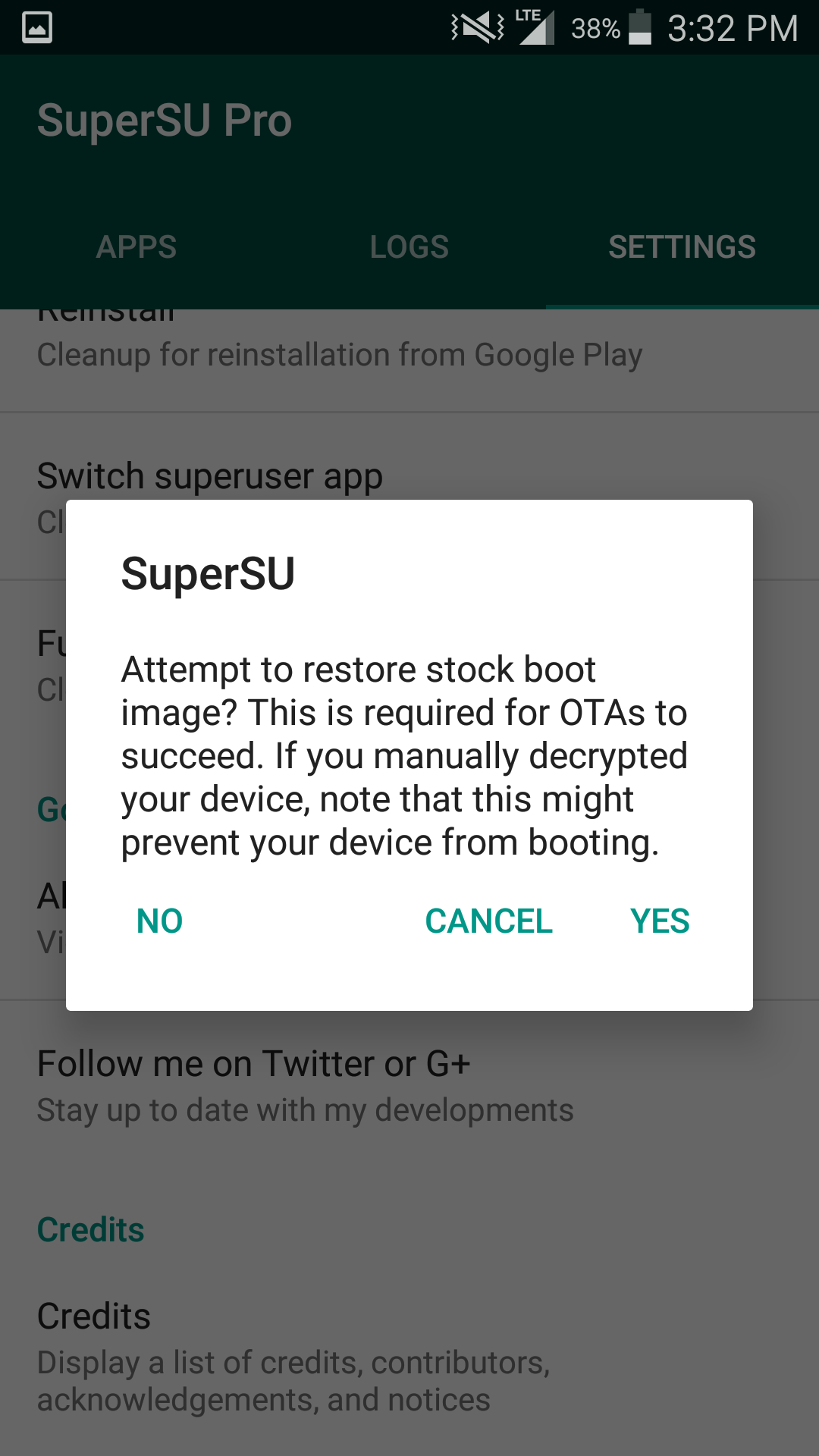 The first screenshot shows the message I get when I click "full unroot" in supersu.