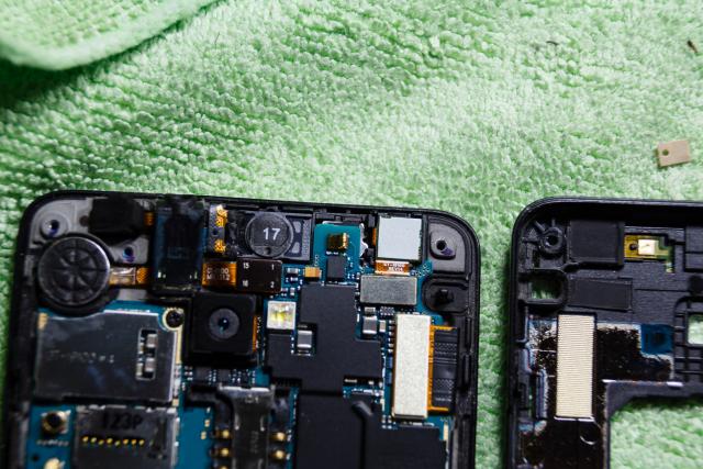I only disassembled till I got the back of the phone off which contains the aerials.