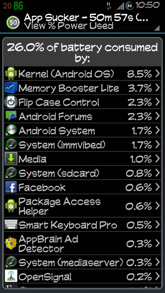 Whenever I use my music player (poweramp) for hours afterwards SD Card drains my battery like crazy (all my music is on sd card). It starts high then gradually comes down.