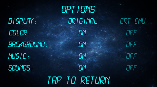 - Display - the player can choose between the original display and a retro-looking CRT emulation, with CRT-like stripes running down the display.