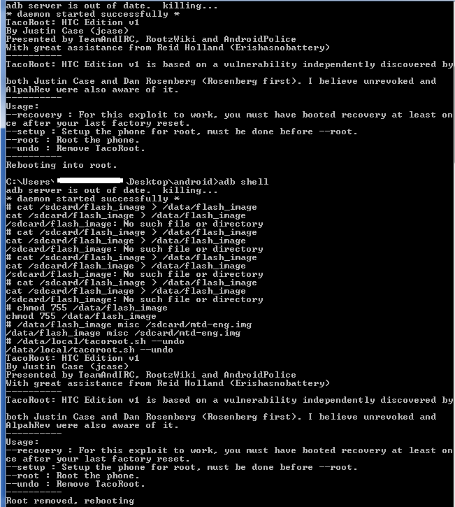 so you initially had no problems issueing the taco root commands in the previous step correct? and then when you went to start step 10 where you type adb shell you get nothing? am i correct in this? and nothing was done in between steps like pulling the cord out or rebooting the phone, correct?