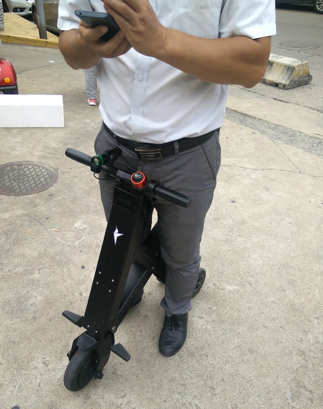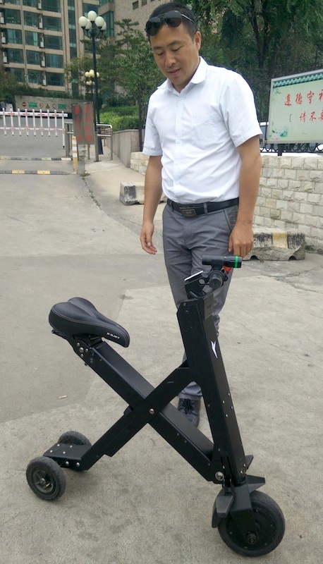 ...so you can use your smart-phone as the key for it, via Bluetooth. In fact it even has a holder for a phone on the handlebars, which tells you speed, battery status, etc, via its app, because it has no instrumentation otherwise. The e-bike itself is called "X bird ", and it's made locally here in Jinan, Shandong.