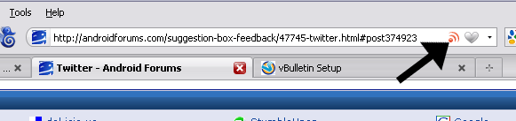 well the vbtwitter mod can be adjusted as to not blow up twitter, the rss icons should show on each page with the browser window to the right.