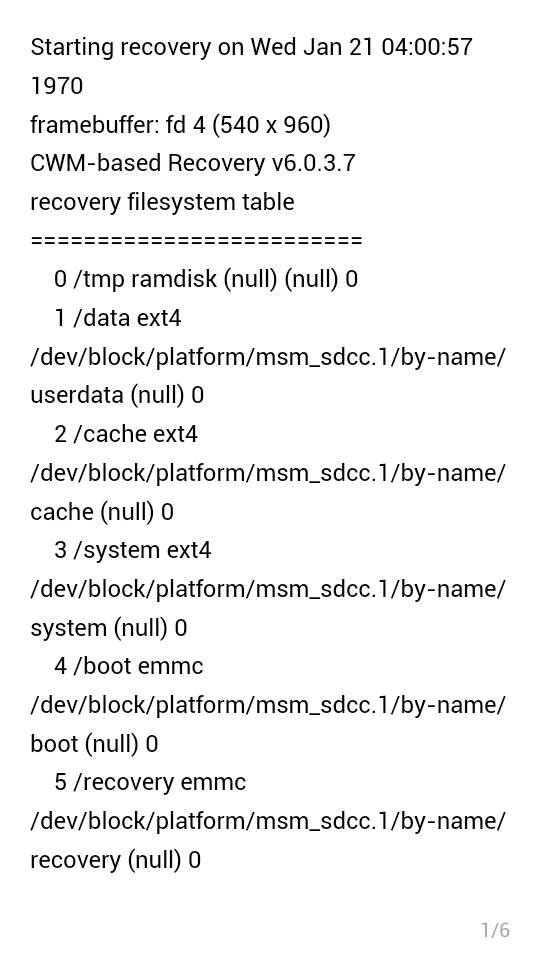 The last thing I did with this cwm recovery was a factory reset.Now I am confused. This log is fubar. The date is WAY off. The recovery type is wrong. The contents don't tell me what I was looking for. There are errors, but I am unsure if they are related. One question, was the last thing you did with the recovery a factory reset or a flash via flashify?