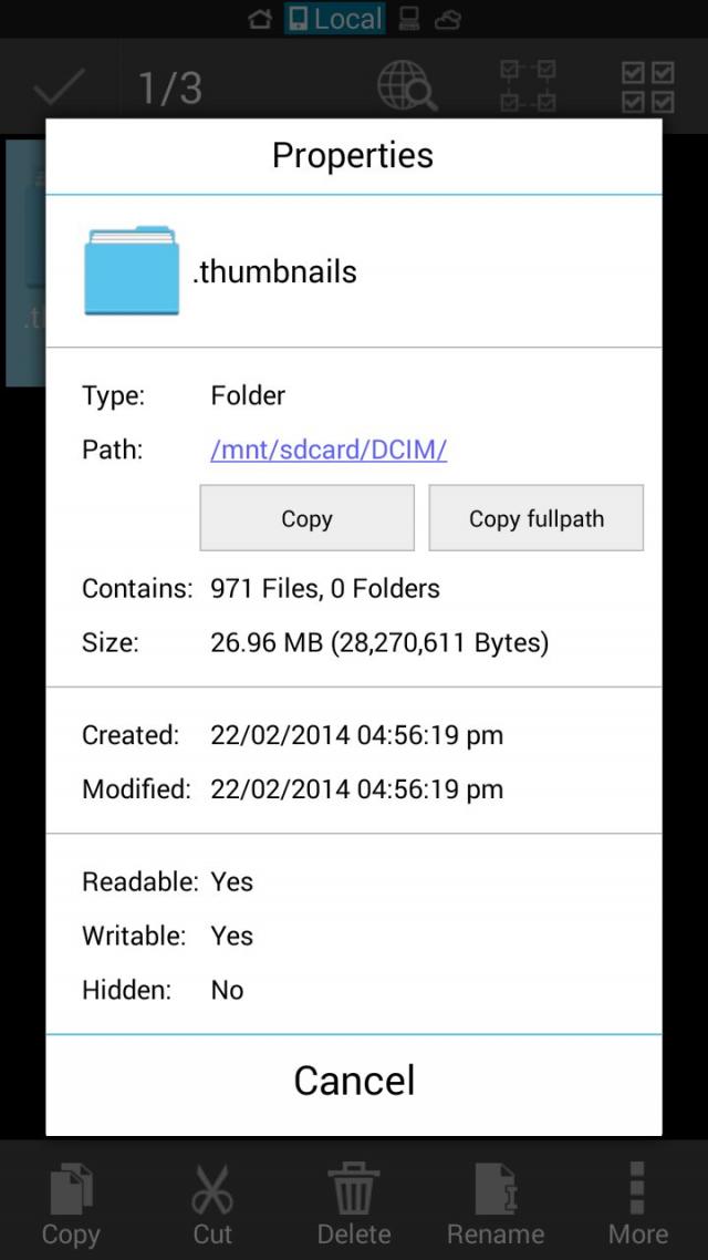 Note: The only devices that 'll have a problem are devices using the FAT32 filesystem, which does not support sparse files. If size reported by ls and actual size reported by du is the same for thumbdata3, it means you have a FAT32 filesystem, post the name of your device so the rest of us can avoid that device.