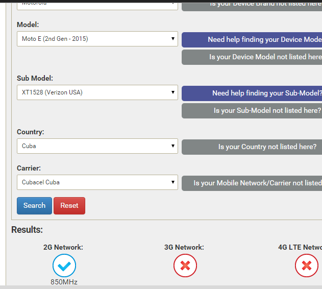 It's Cuba company is cubacel only one that they have I know weird but family's there. With that site it says the Verizon model only supports 850 there which is only available in 4 towns , however I need 900 in that town.http://www.willmyphonework.net/